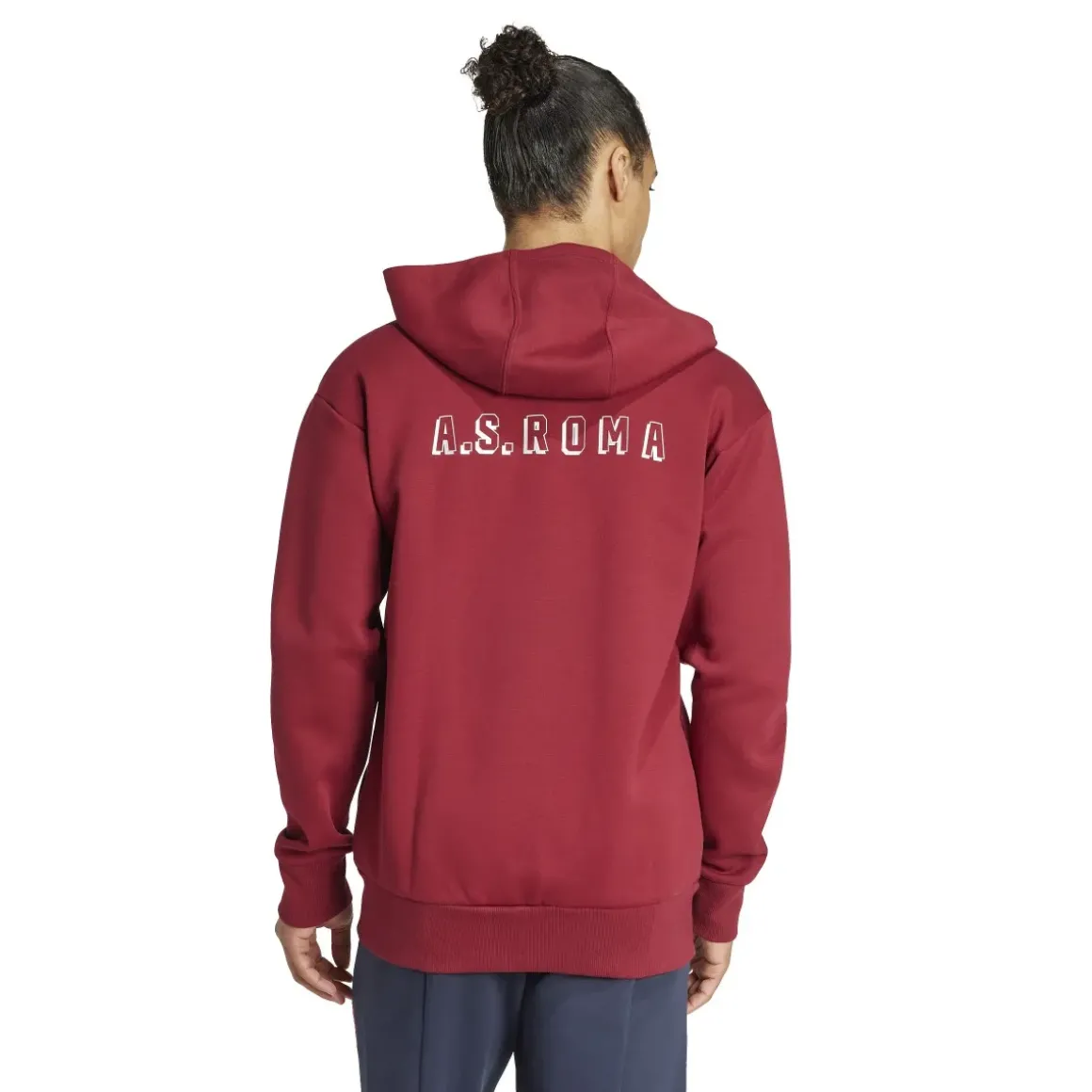 Celebra la tua fede calcistica con questa giacca adidas della Roma, indossata dai giocatori quando entrano in campo il giorno della partita. Il nome del club sulla schiena e lo stemma sul petto ti faranno sentire parte della squadra, mentre la struttura in filato doppio e il cappuccio regolabile con cordino assicurano morbidezza e praticità in ogni situazione.